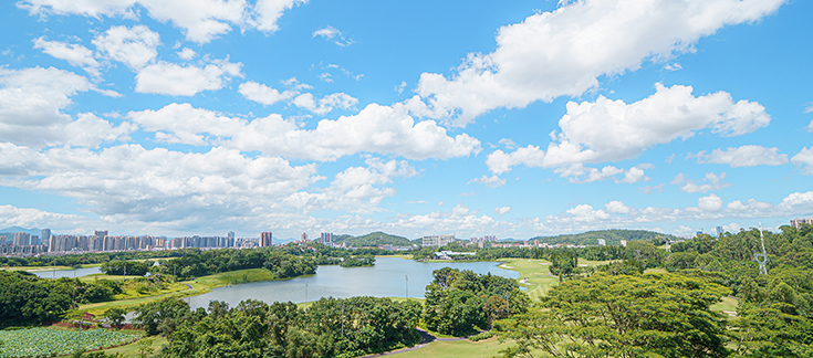 酒店背倚龍湖碧波瀲滟